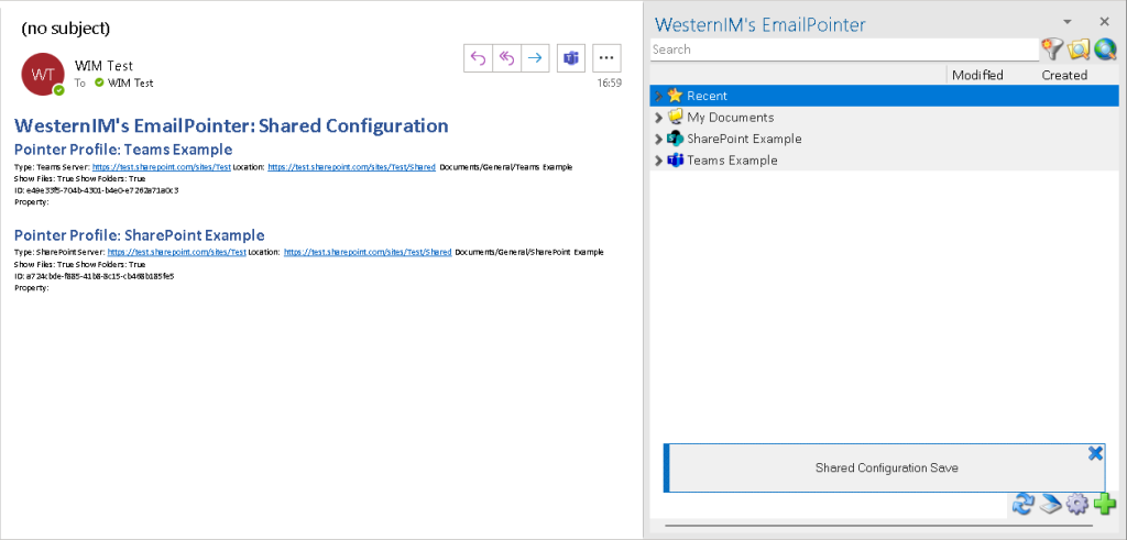 This will insert the information for the additional Pointer Profile at the top of the list of Shared Pointer Profiles, beneath the “WesternIM’s EmailPointer: Shared Configuration” Title.